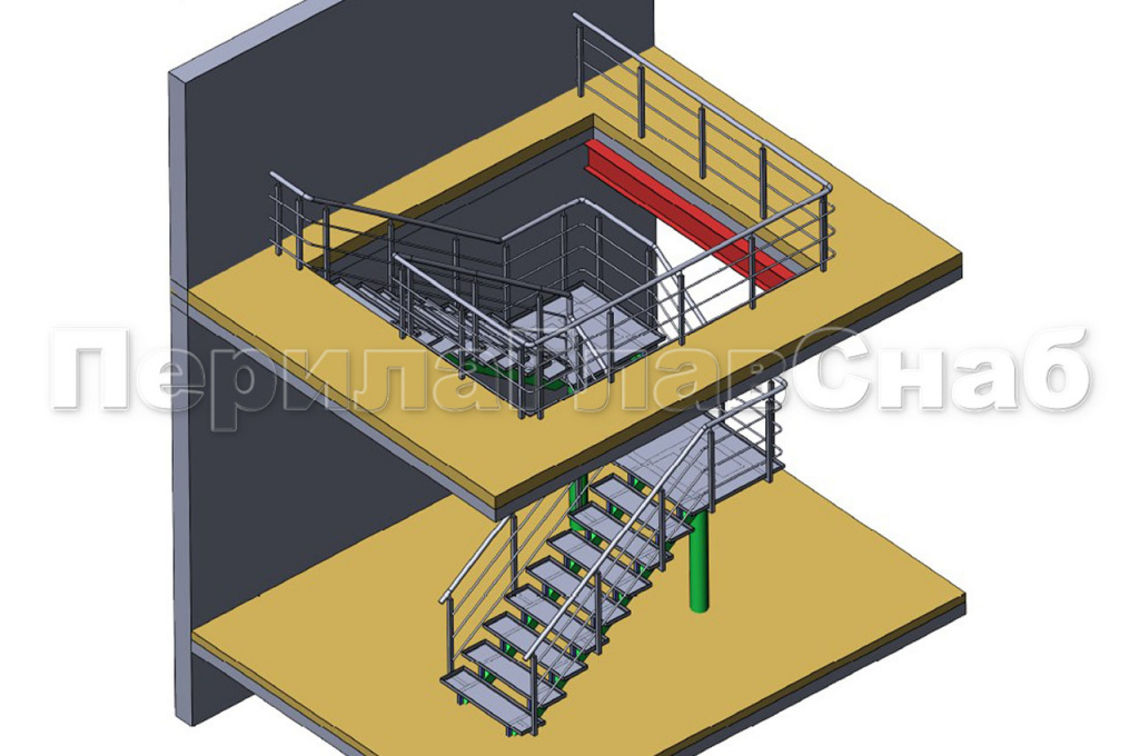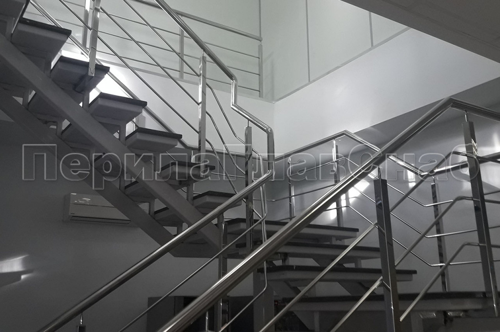 В связи с реконструкцией офисного помещения, находящегося в поселке возникла потребность в изготовлении и монтаже лестницы, высотой четыре метра, с первого на второй этаж, с двумя промежуточными площадками. К нам в компанию обратился заказчик за помощью в решении этой задачи.  На первом этапе для моделирования и составления расчетов лестницы, нашим конструкторским отделом был разработан, проект на данную лестницу. После согласования проекта с заказчиком, приступили к изготовлению и монтажу лестницы. Конструкция косоуров и площадки, выполнены из профильной трубы марки стали 3. Каркас ступени и площадки был сформирован из листа в виде корыта, для последующей заливки их бетоном. Вся конструкция лестницы сварная с последующей зачисткой швов всего металлокаркаса, шпатлевкой, грунтовкой и покраской пульверизатором по каталогу Ral. Ограждения на лестницу были выполнены из полированной нержавеющей стали. Стойки перил изготовлены из профильной трубы 40*40мм, крепились к косоуру лестницы на сварку. Поручень из трубы диаметром 50 мм крепился к стойке через наконечник штырь на сварку, поручень завязан по всей длине лестницы. Заполнение между стойками ригельное из трубы диаметром 16 мм, ригель крепился к стойке сваркой снизу. Все сварные швы ограждения были зачищены и заполированы. С задачей справились. Работы по изготовлению и монтажу лестницы и перил, были выполнены в течение шестидесяти рабочих дней.