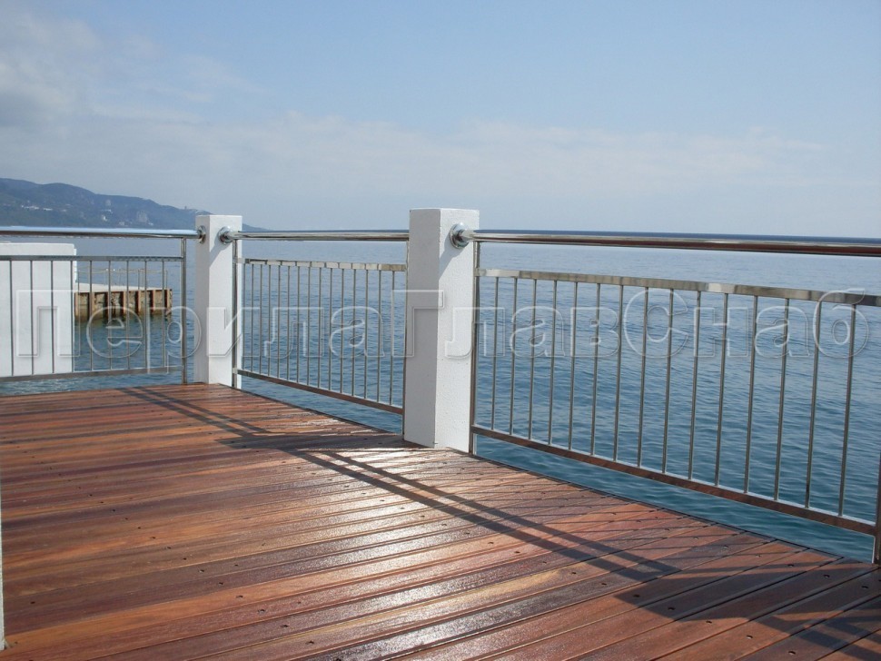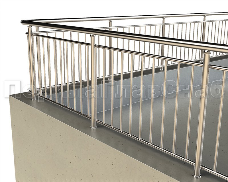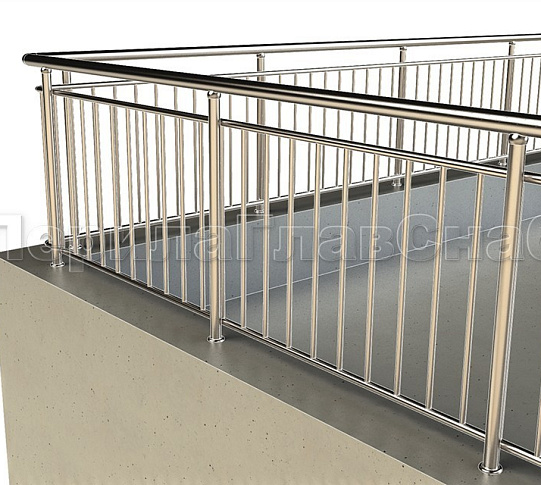 Можно заказать два варианта ограждений из нержавеющей стали с вертикальным заполнением: