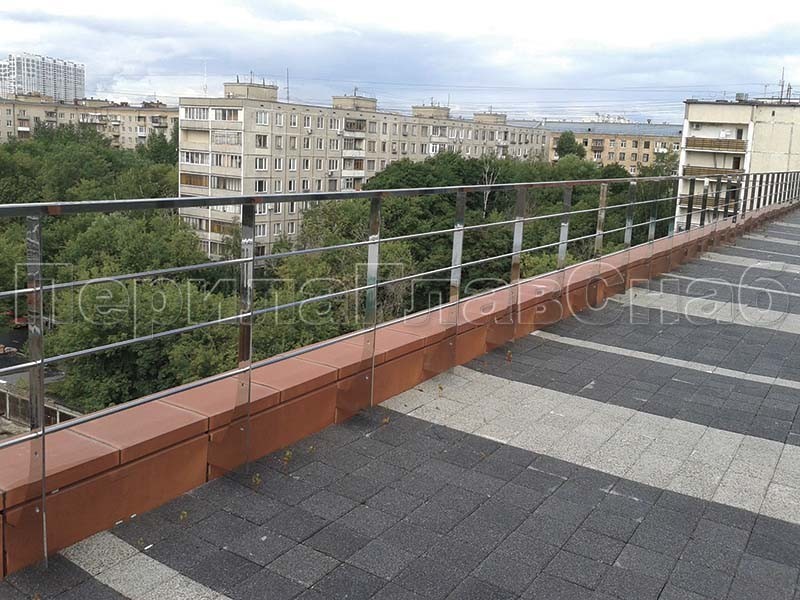 Ограждение кровли на несущем стекле и алюминиевом профиле