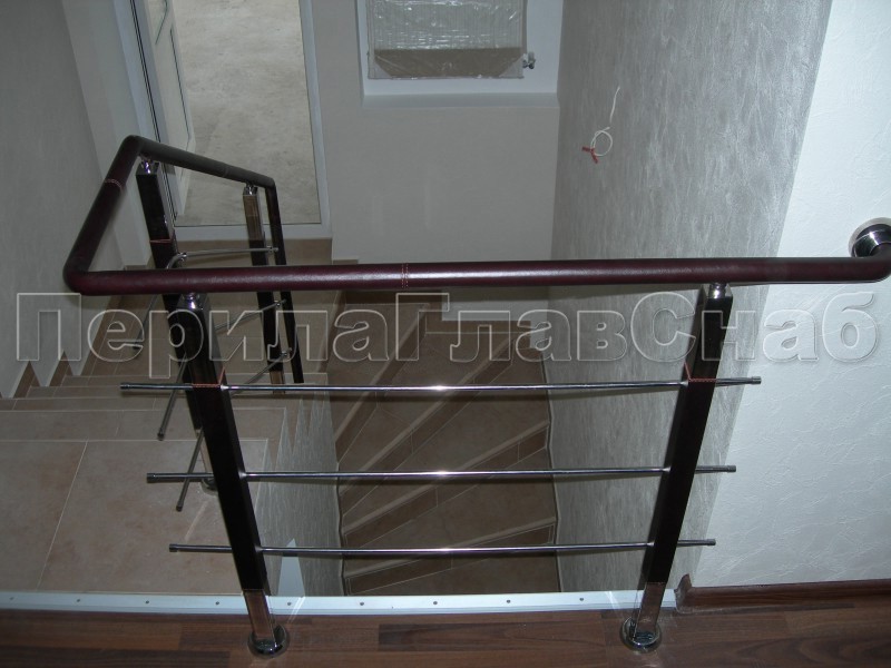 Четыре ригеля на сварке, круглый поручень и квадратные стойки