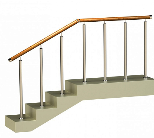Ограждения с двумя стойками в каждую ступень с деревянным поручнем и без ригелей