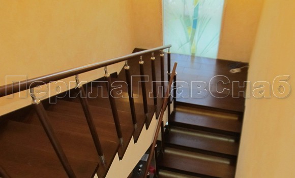 Ограждения с двумя стойками в каждую ступень с деревянным поручнем и без ригелей