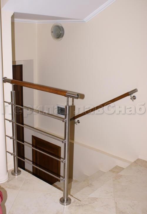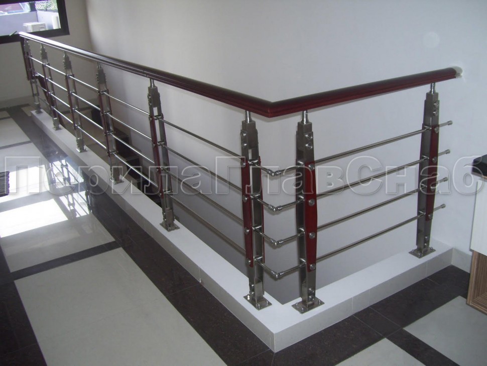 Нержавеющие ограждения без ригелей с круглым поручнем и стойками с деревянными вставками