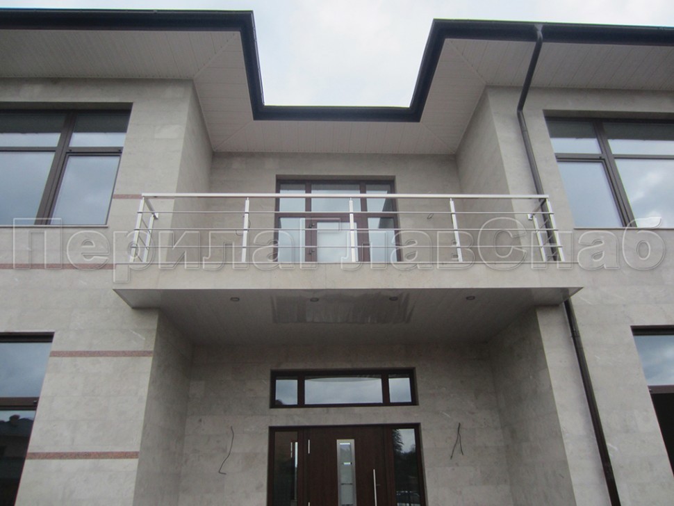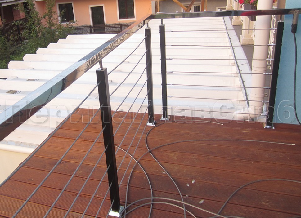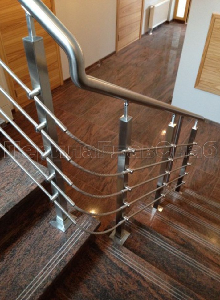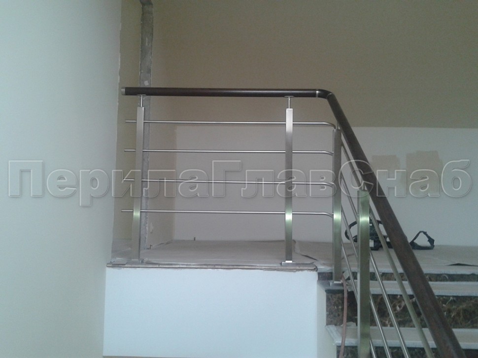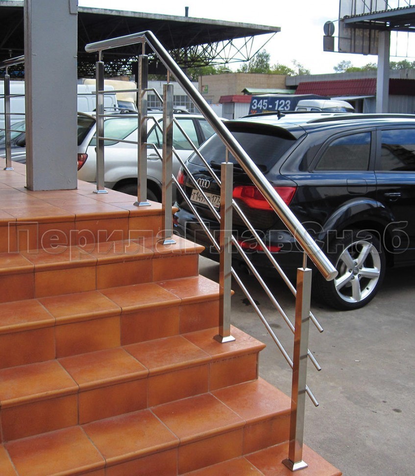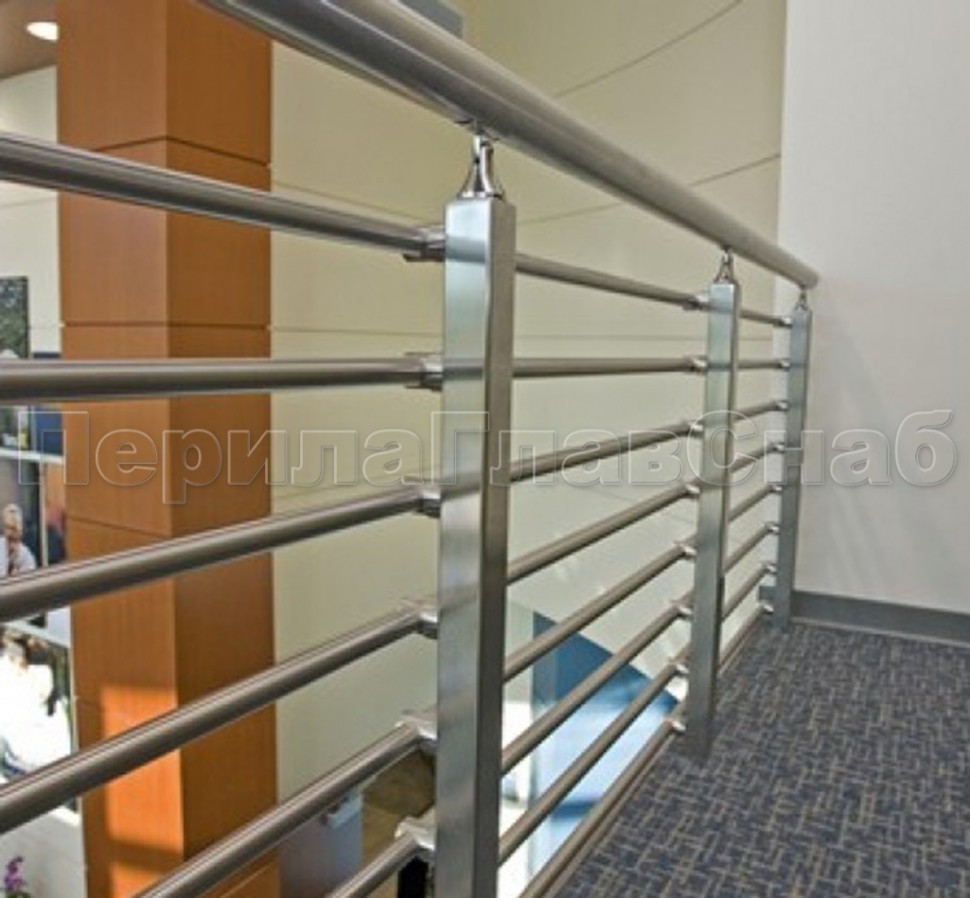 Записаться на встречу Два ригеля на держателях, круглый поручень и квадратные стойки