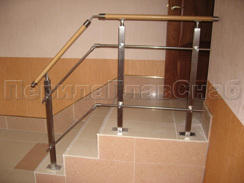 Записаться на встречу Два ригеля на сварке, круглый поручень и квадратные стойки