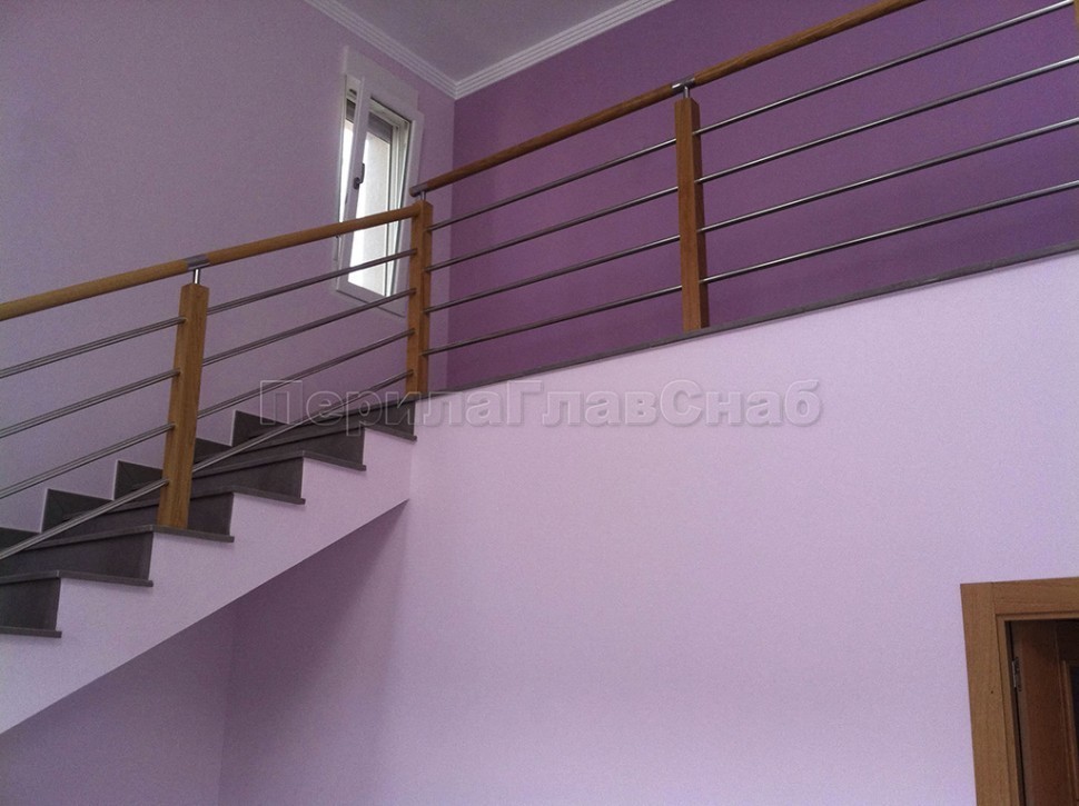 Нержавеющие ограждения без ригелей с круглым поручнем и стойками с деревянными вставками