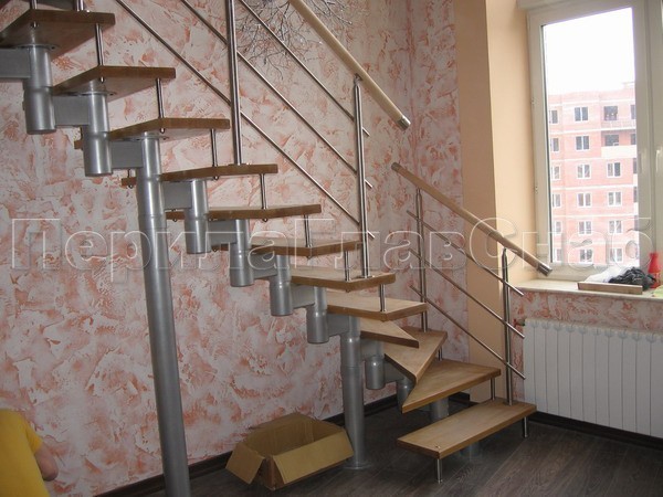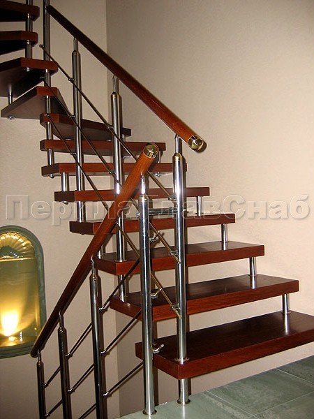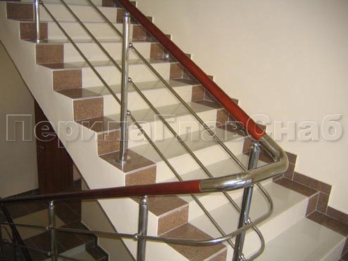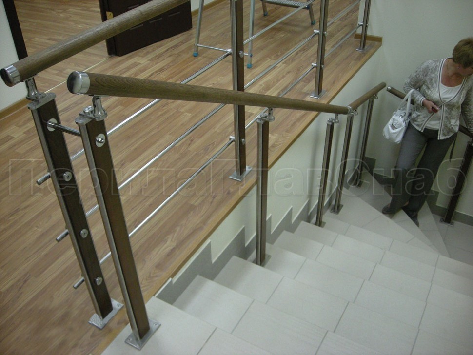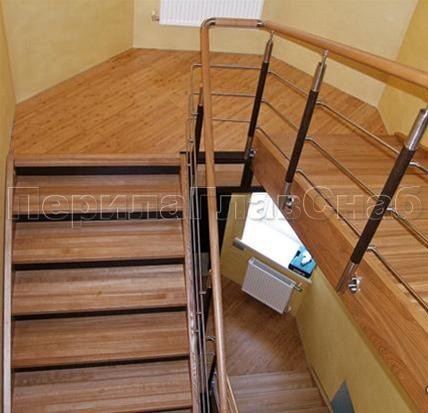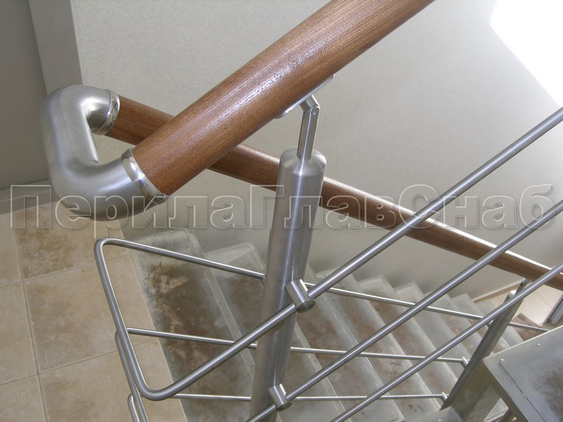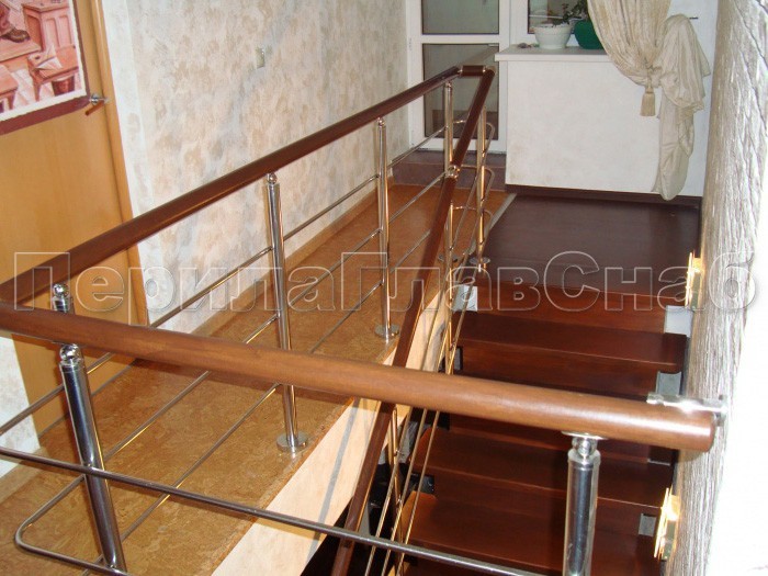 Записаться на встречу Три ригеля на сварке, круглый деревянный поручень и круглые стойки