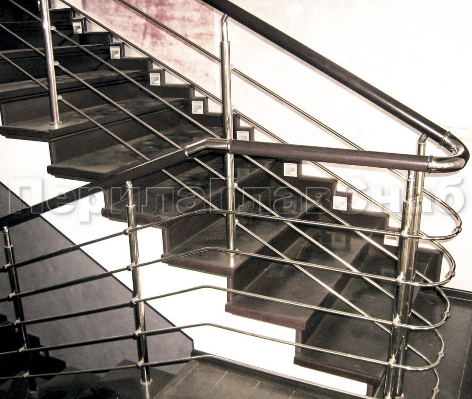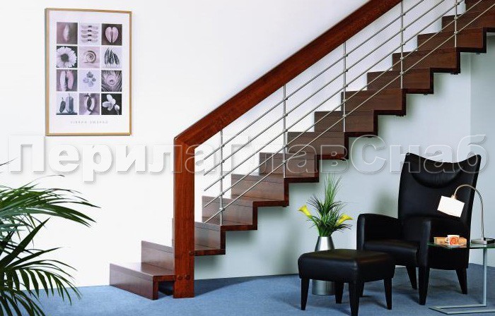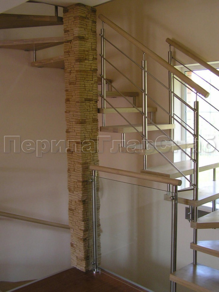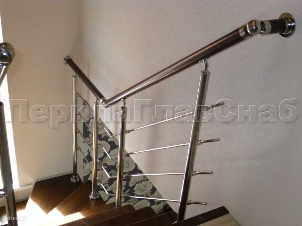 Записаться на встречу Четыре ригеля на держателях, круглый деревянный поручень и круглые стойки