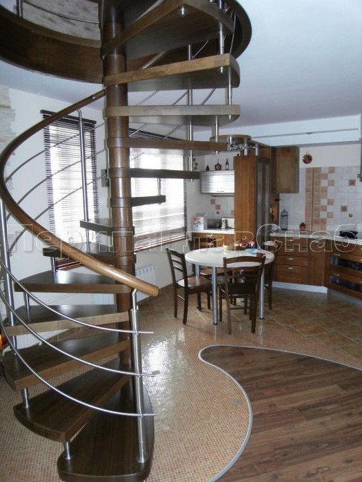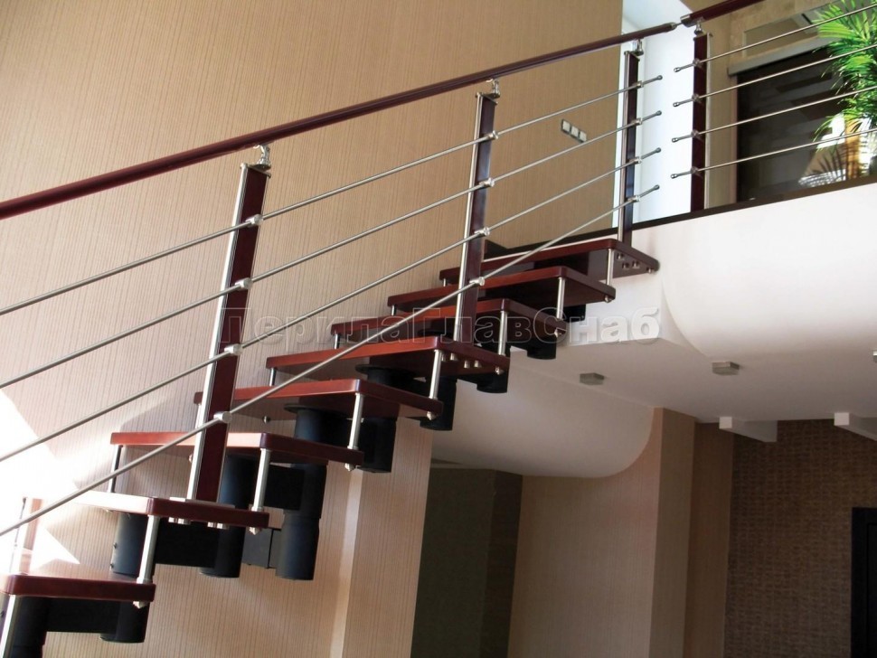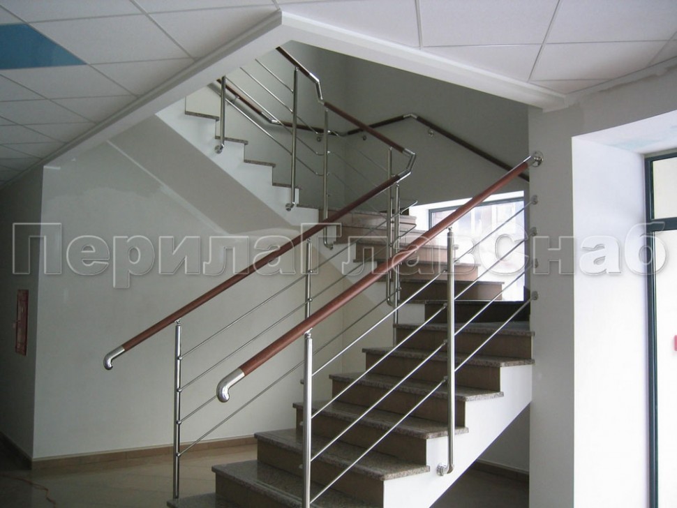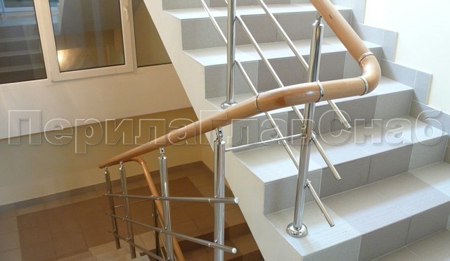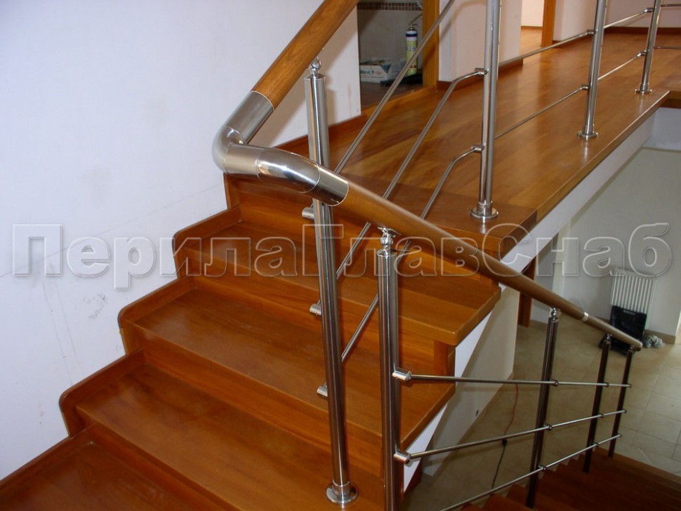 Записаться на встречу Два ригеля на держателях, круглый деревянный поручень и круглые стойки