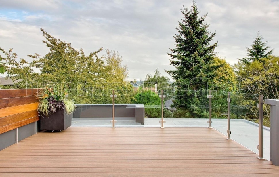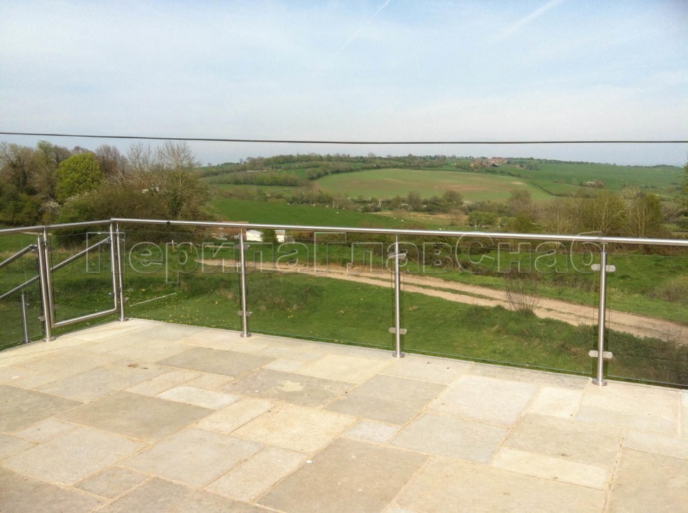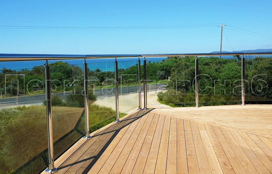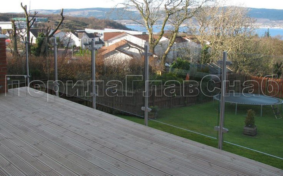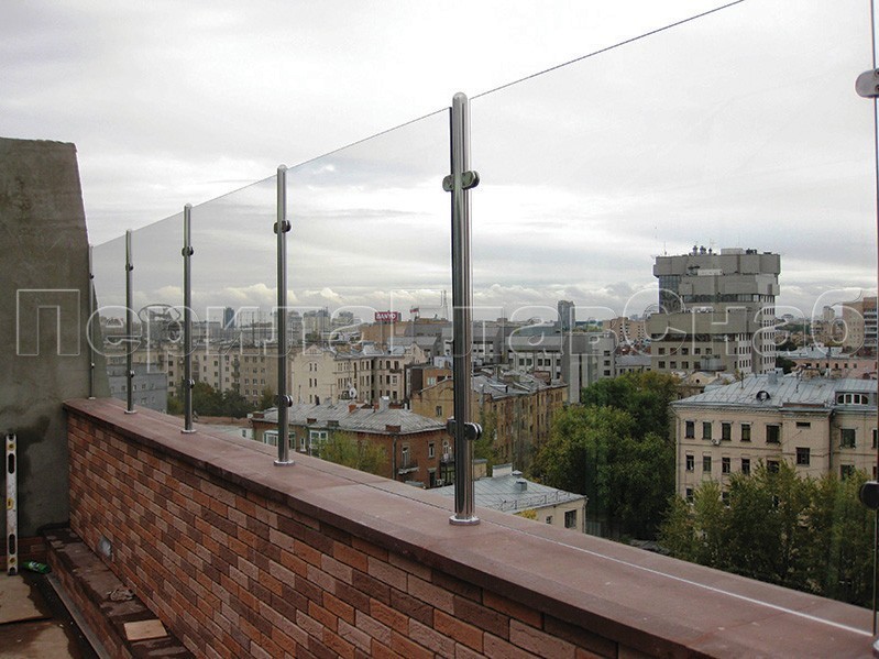 Стеклянные ограждения для крыши или кровли с нержавеющими стойками.