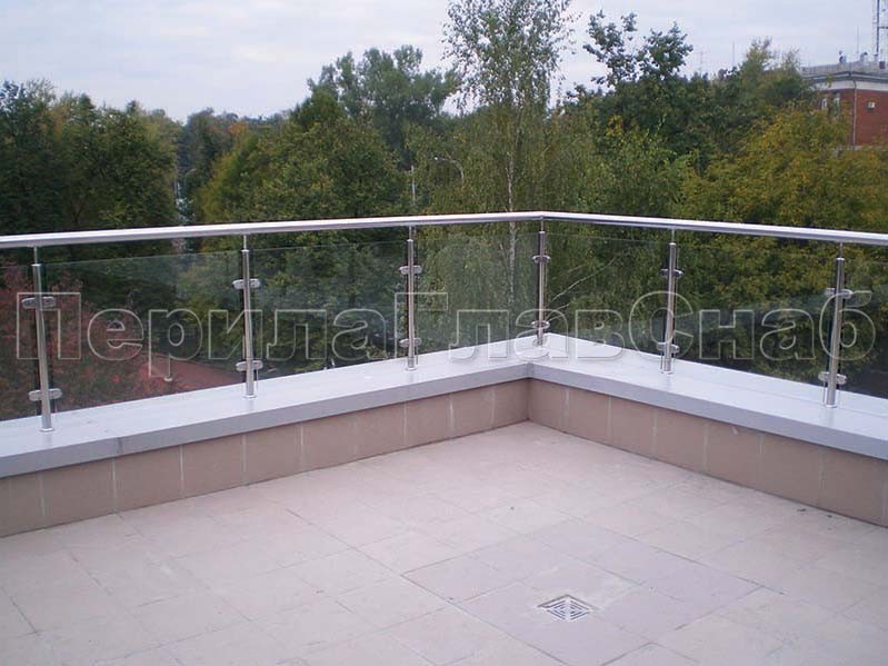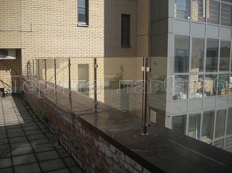 Ограждение на несущем стекле с торцевым креплением для крыш