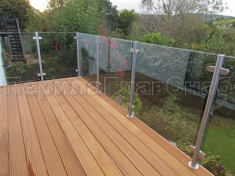 Ограждение с деревянным поручнем с зажимными стеклодержателями и стойками