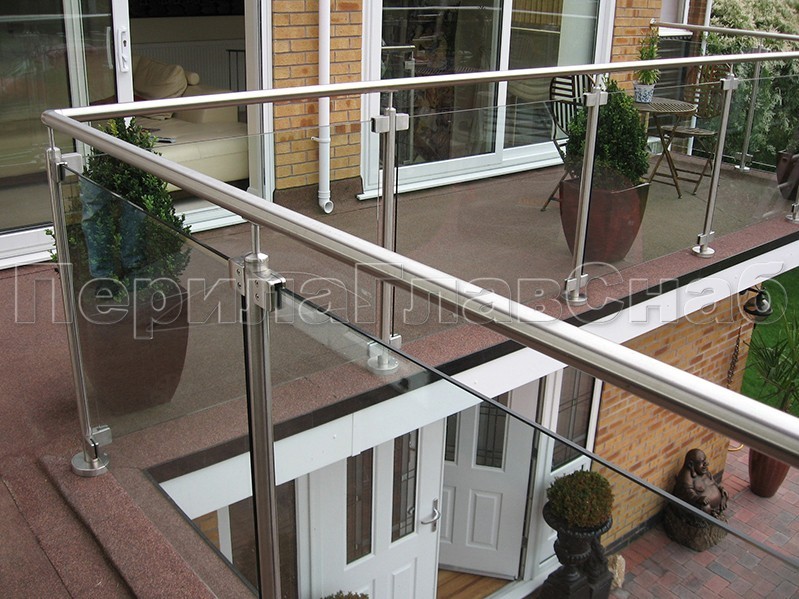 Ограждение для лестницы из нержавейки с зажимными стеклодержателями для крыльца