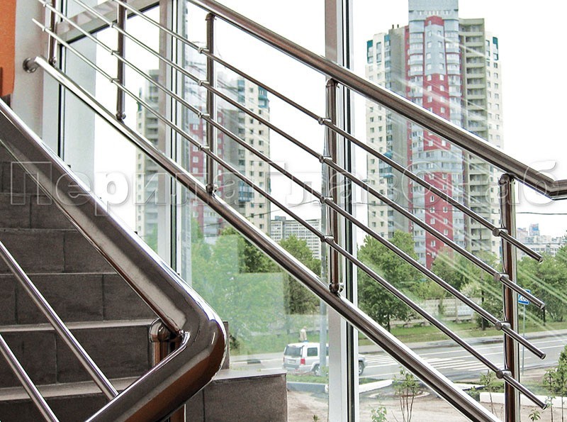 Межэтажное ограждение из нержавеющей стали с торцевым креплением для окон