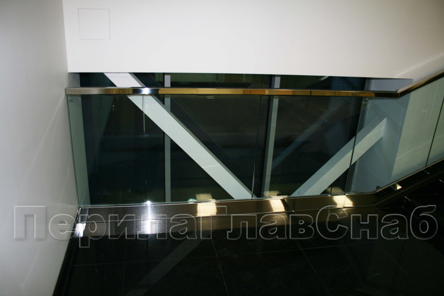 Ограждения со стеклом с крепление в пол окна на лестничной площадке в Самаре. Готовые проекты ПерилаГлавСнаб - фото 1