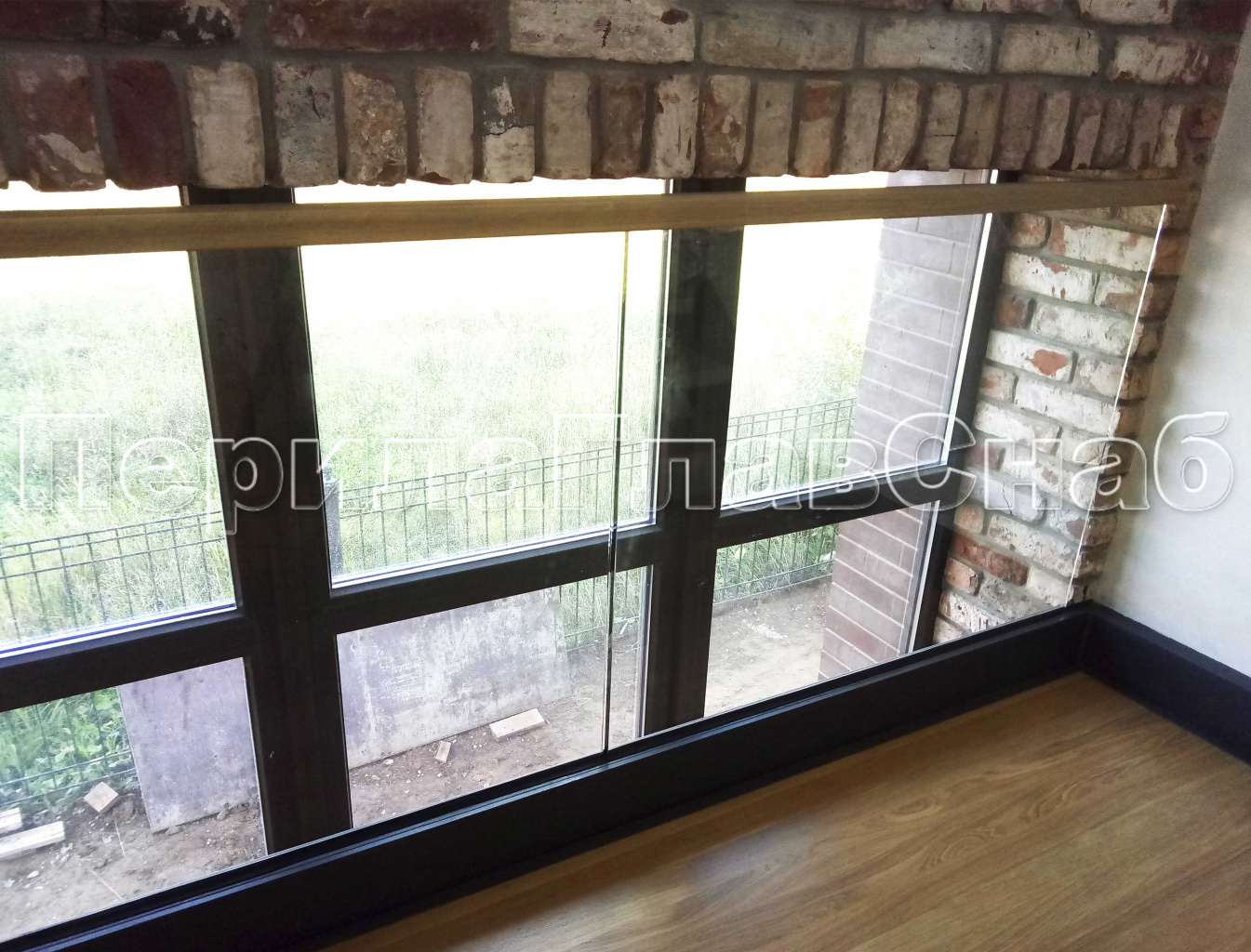 Ограждения со стеклом с крепление в пол окна на лестничной площадке