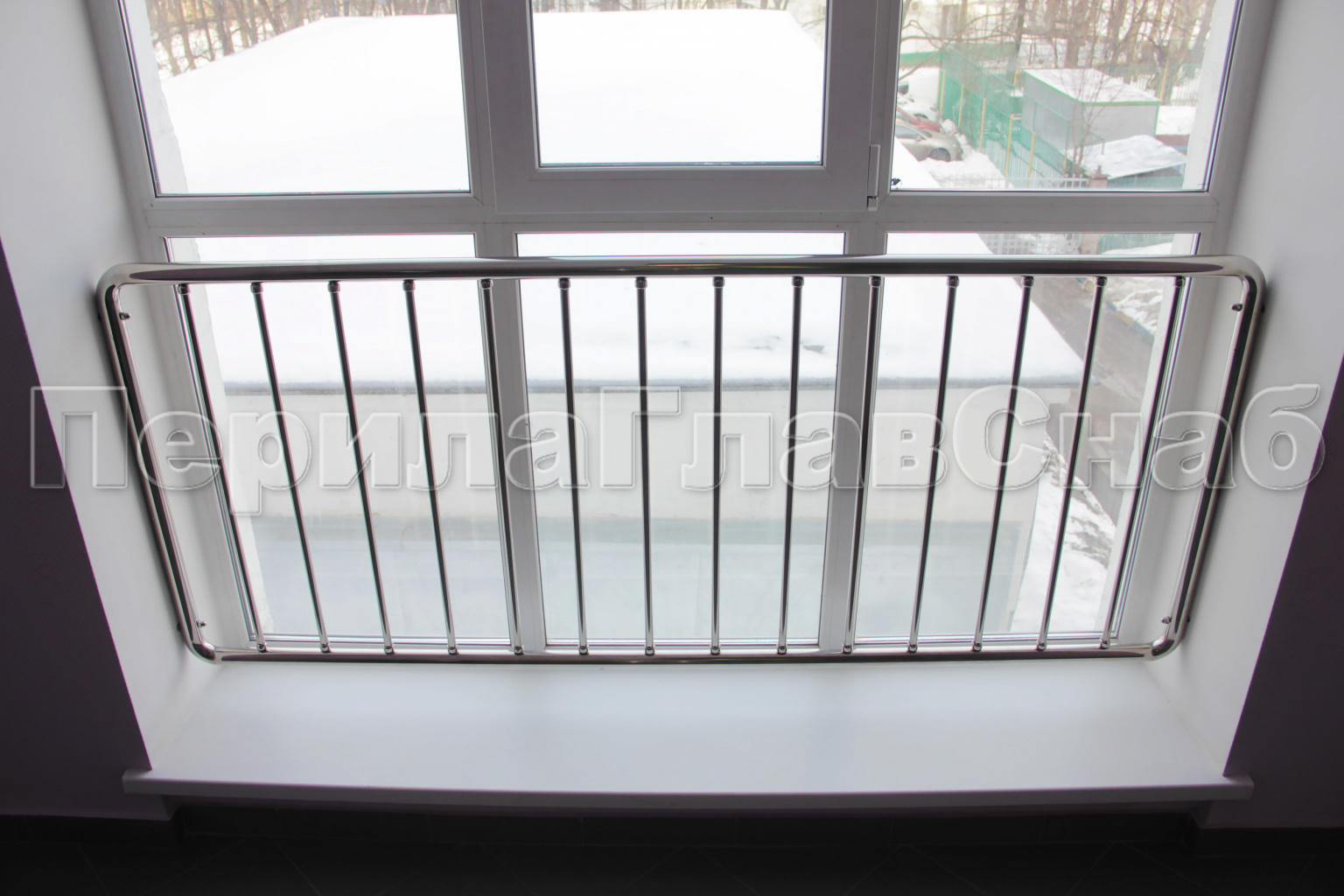 Ограждениие из нержавейки со стеклом для окон в Самаре. Готовые проекты ПерилаГлавСнаб