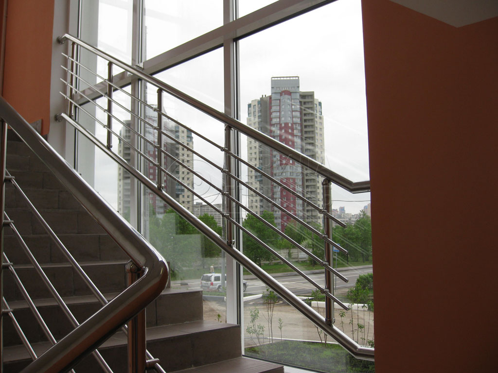 Межэтажное ограждение из нержавеющей стали с торцевым креплением для окон в Самаре. Готовые проекты ПерилаГлавСнаб