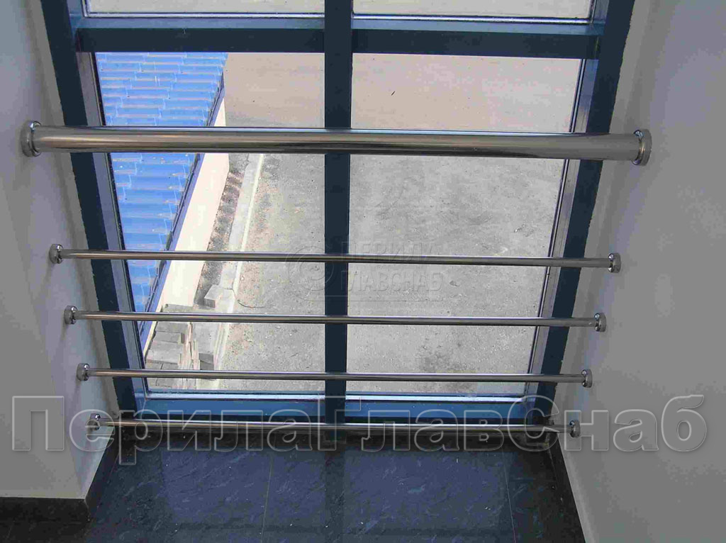 Ограждение на окнах из нержавещей трубы с ригелями в Самаре. Готовые проекты ПерилаГлавСнаб