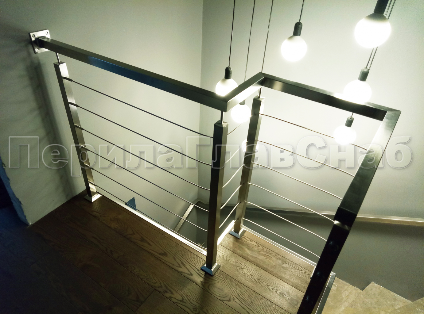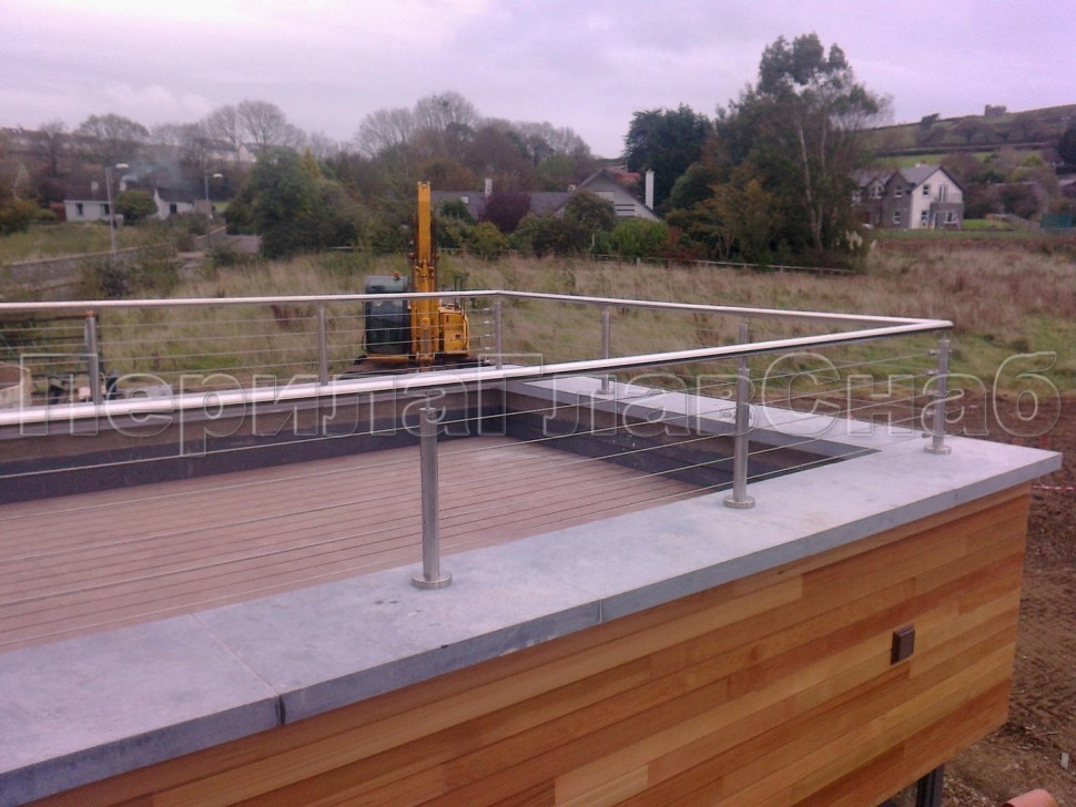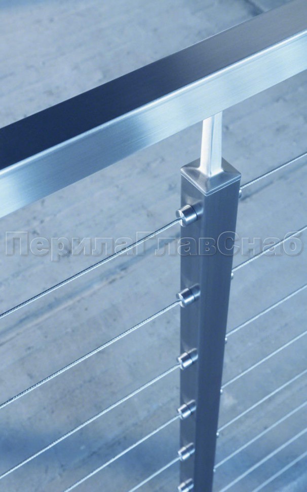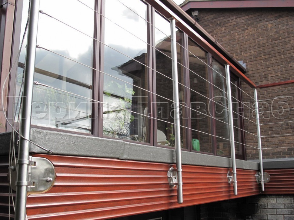 Ограждения из нержавейки. Заполнение из 7ми тросиков + декоративные наконечники