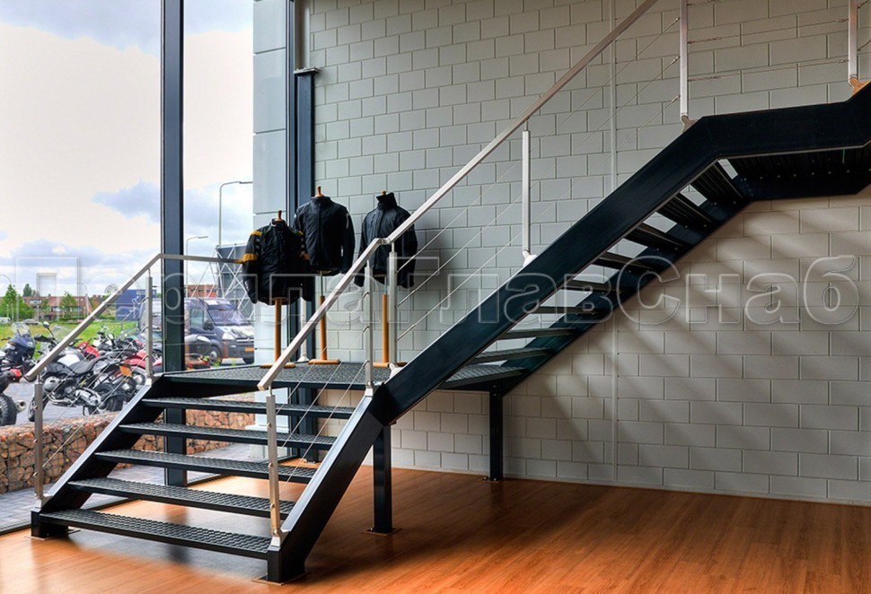Ограждение лестницы с двумя ригелями
