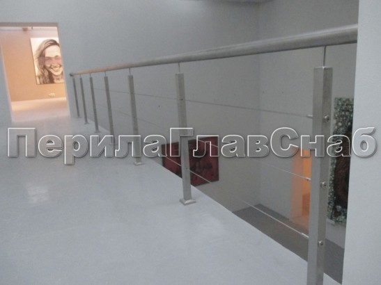 Ограждения из нержавейки. Заполнение из 4х тросиков. Квадратные стойки.