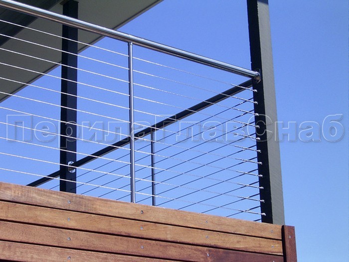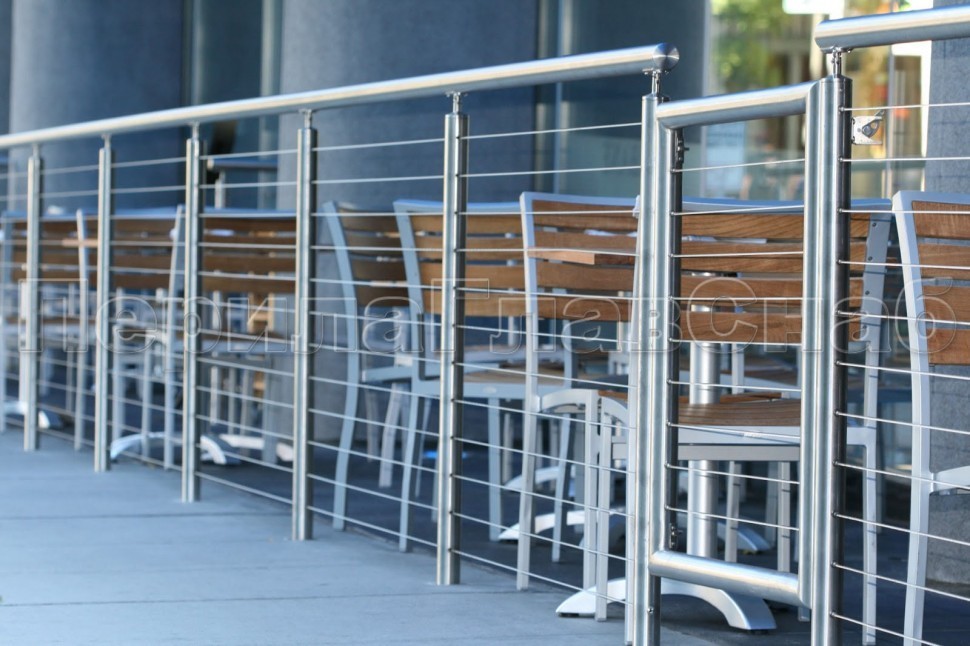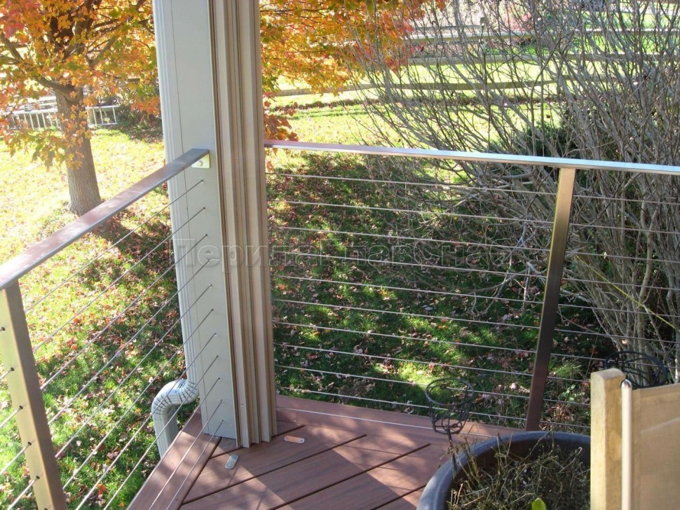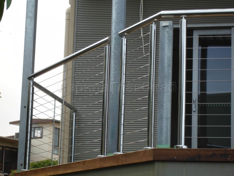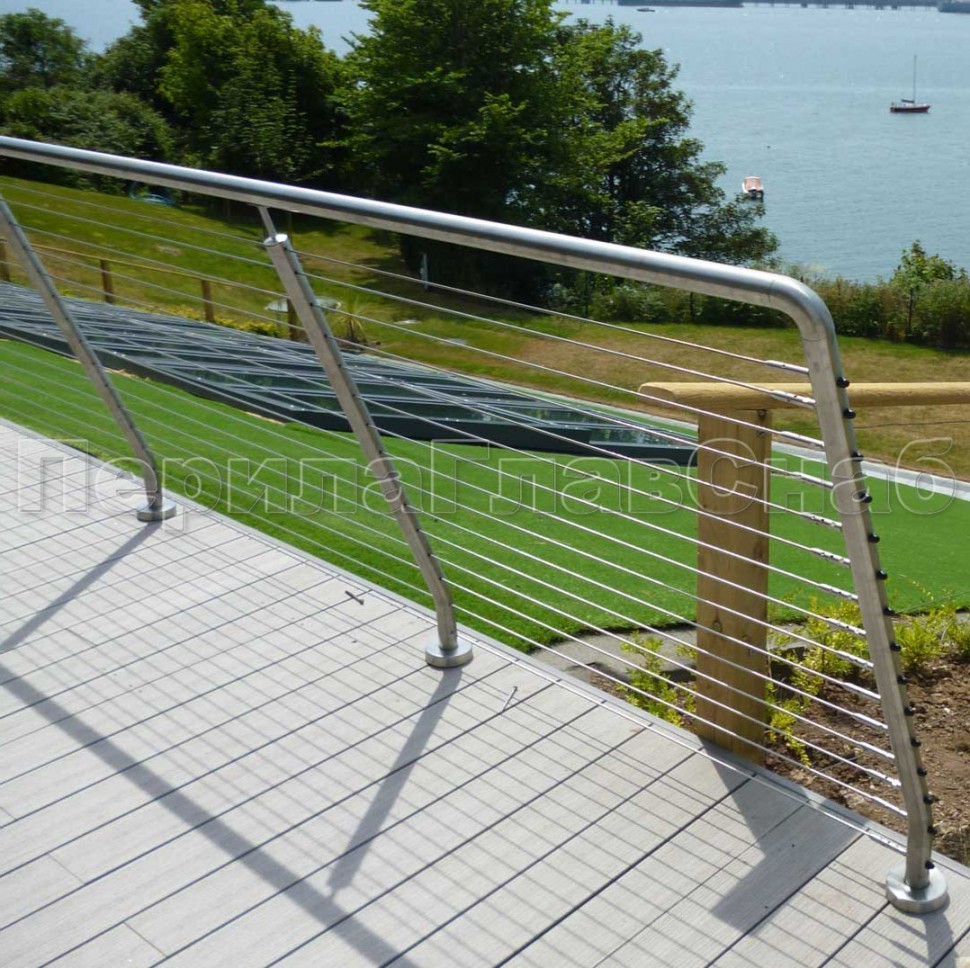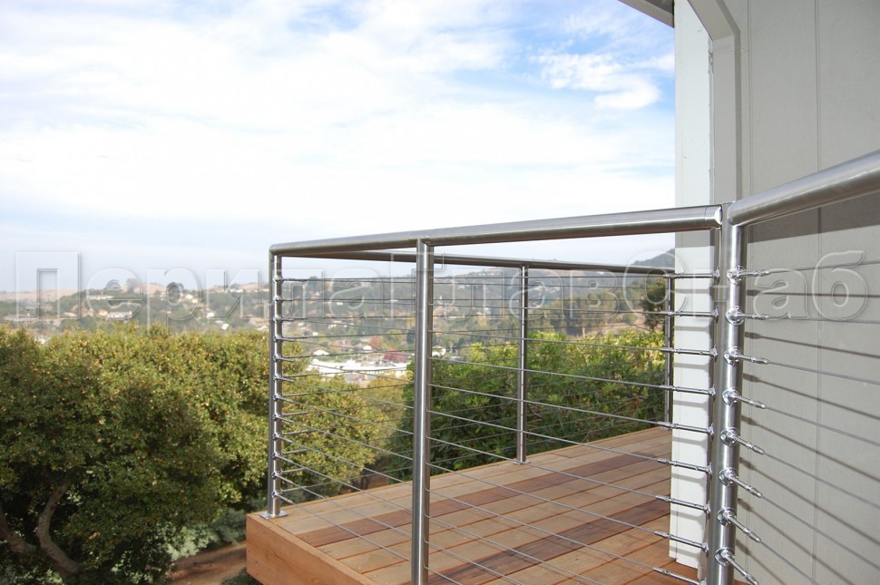 Ограждения из нержавейки. Заполнение из 7ми тросиков + декоративные наконечники