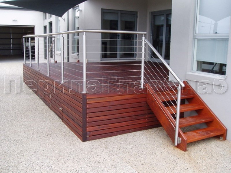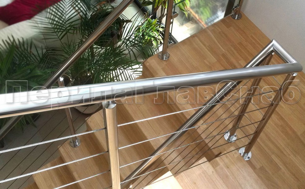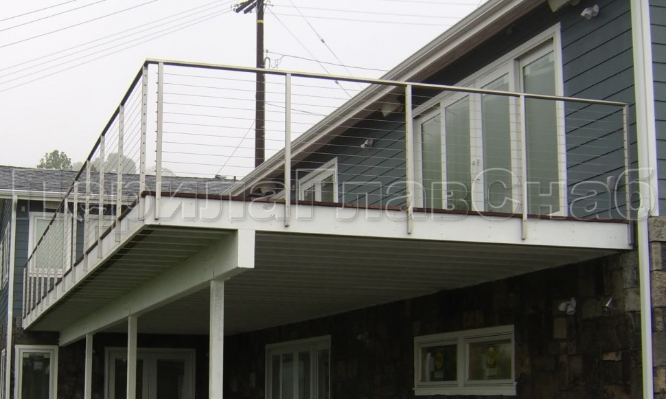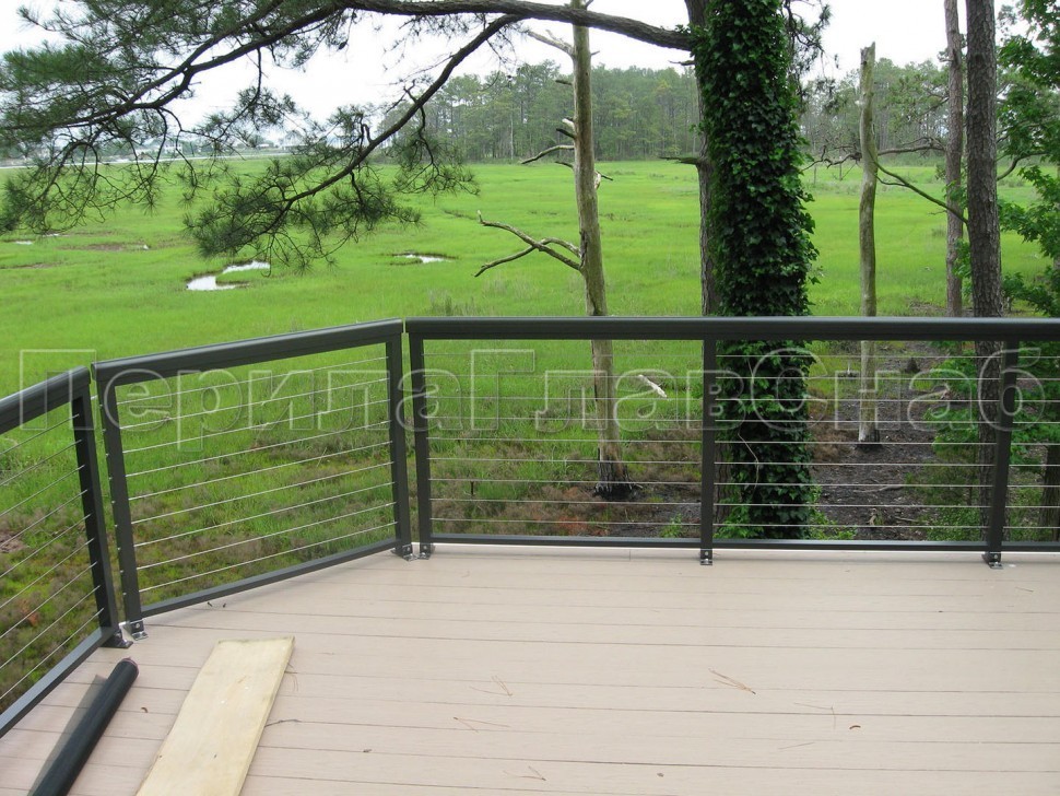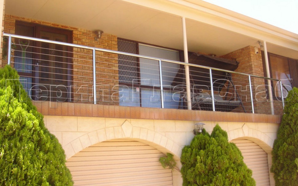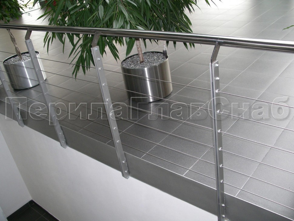 Ограждения из нержавейки. Заполнение из 7ми тросиков + декоративные наконечники