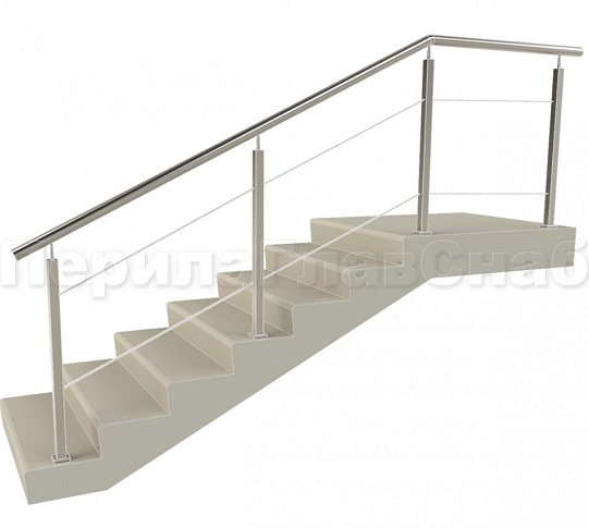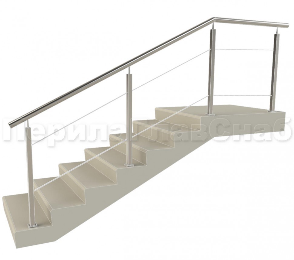 Записаться на встречу Ограждения из нержавейки. Заполнение из 2х тросиков. Квадратные стойки