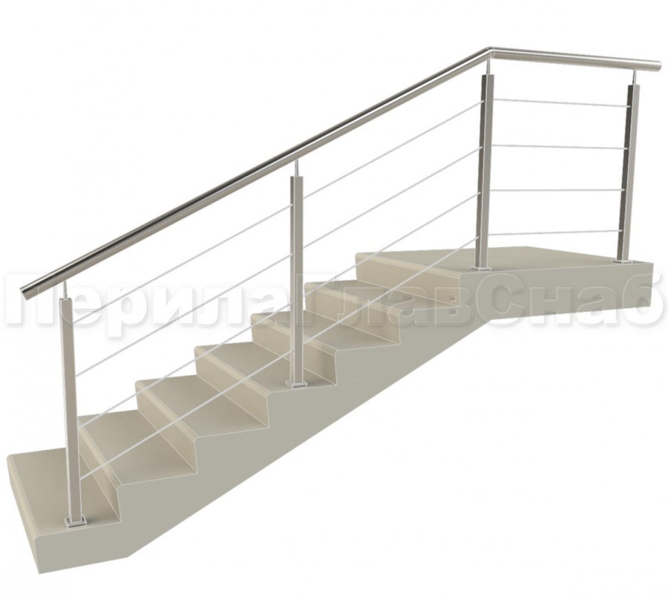 Ограждения из нержавейки. Заполнение из 3х тросиков. Квадратные стойки.