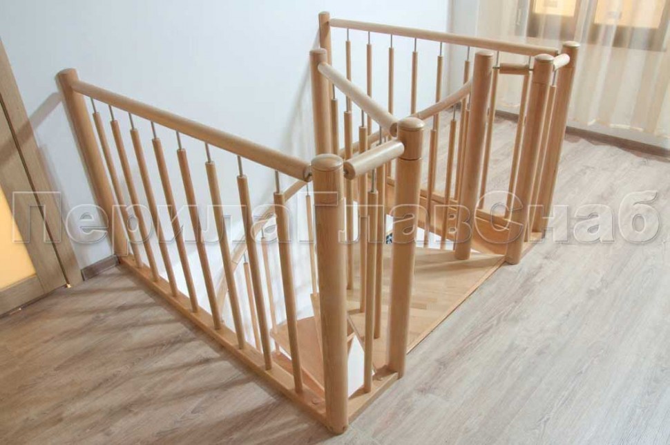Ограждения с двумя стойками в каждую ступень с деревянным поручнем и без ригелей