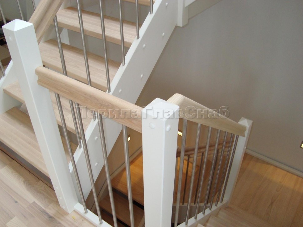 Ограждения со стойками в каждую ступень с круглым деревянным поручнем без ригелей