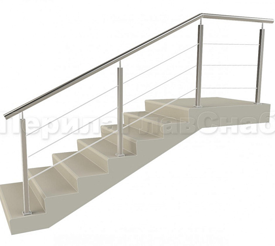Записаться на встречу Ограждения из нержавейки. Заполнение из 3х тросиков. Квадратные стойки.