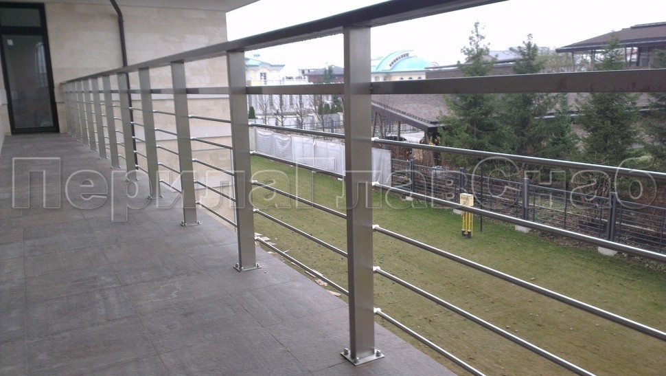 Записаться на встречу Четыре ригеля на держателях, квадратный поручень и квадратные стойки