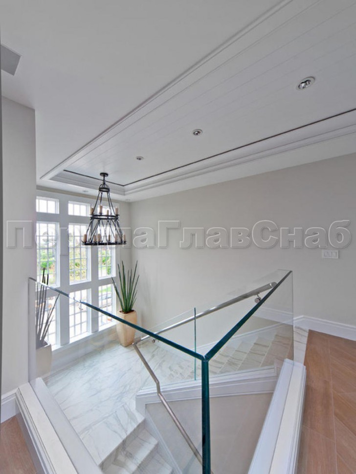 Ограждение с профильным поручнем с пазом на точечном креплении на лестнице