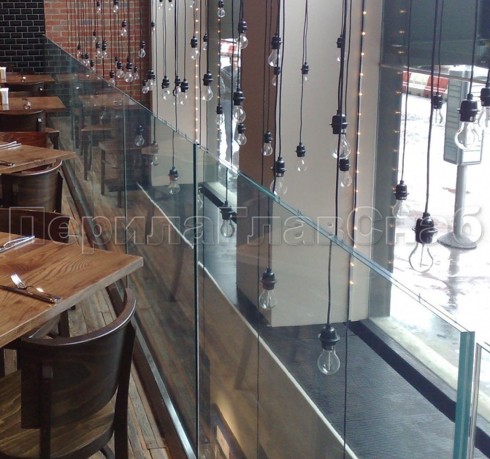 Ограждение без поручня на профиле на лестнице