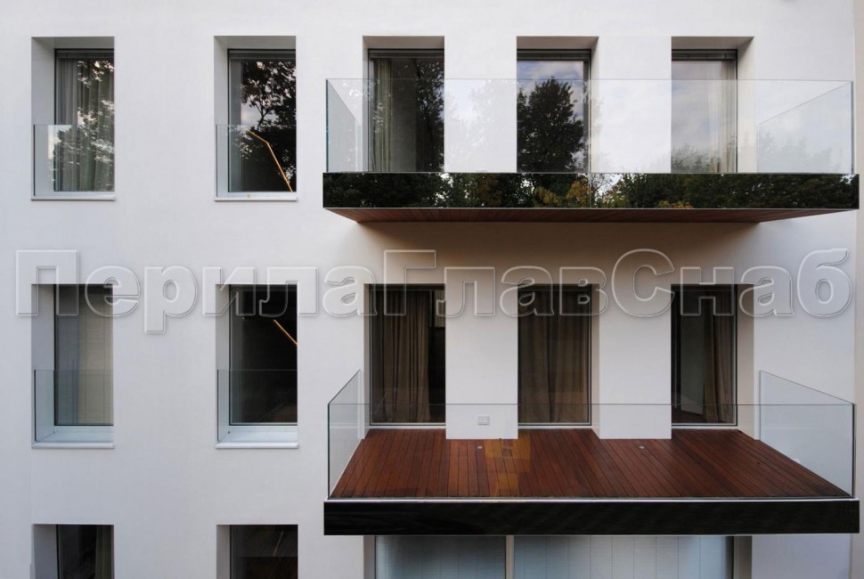 Ограждение с деревянным поручнем на выносе на точечном креплении