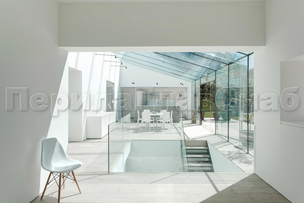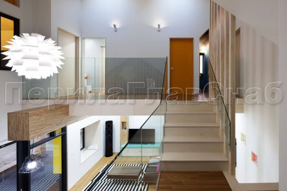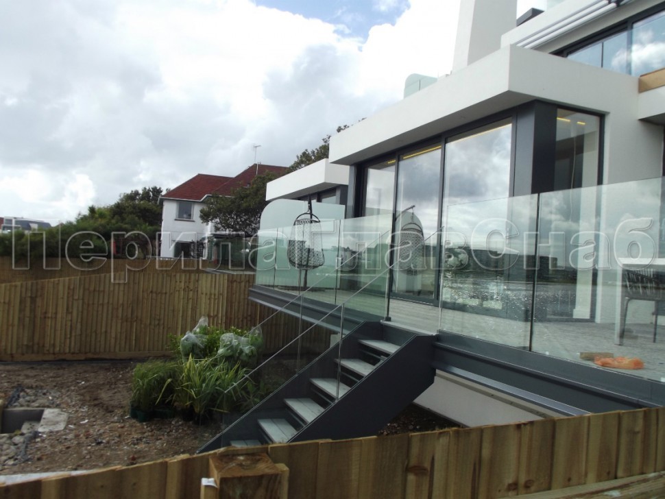 Ограждение без поручня на точечном креплении на лестнице
