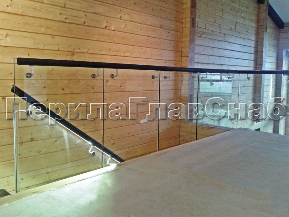 Записаться на встречу Ограждение с поручнем на выносе в зажимном профиле на лестнице