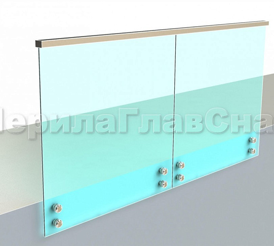 Ограждение с квадратным деревянным поручнем на точечном креплении