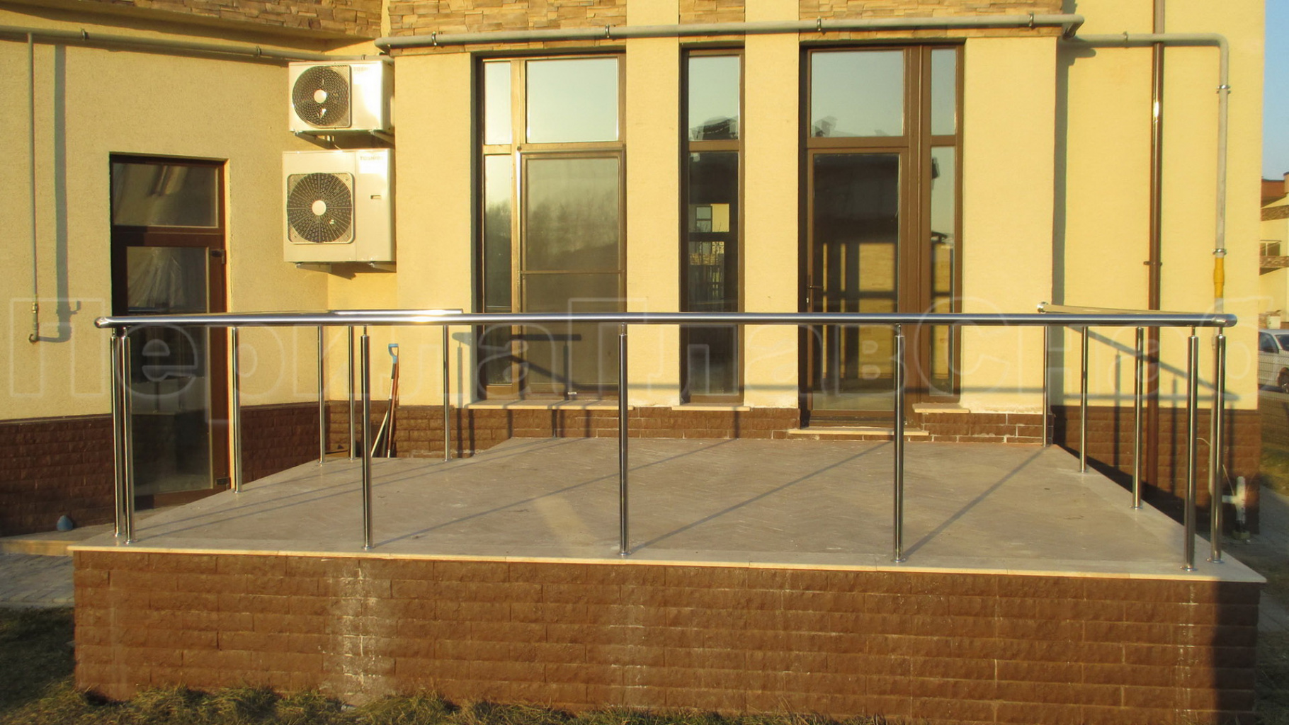 Три ригеля на держателях, круглый поручень и круглые стойки для крыльца