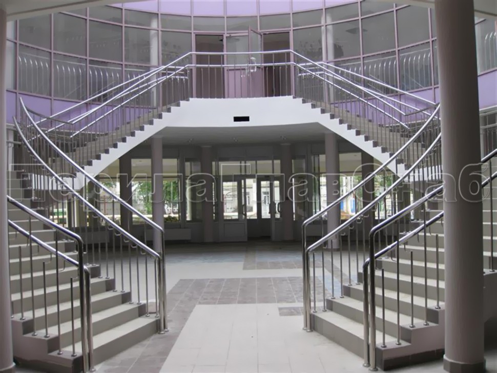 Нержавеющие ограждения для школ и детских садов с вертикальным заполнением “Частокол” - вариант №1 для крыльца
