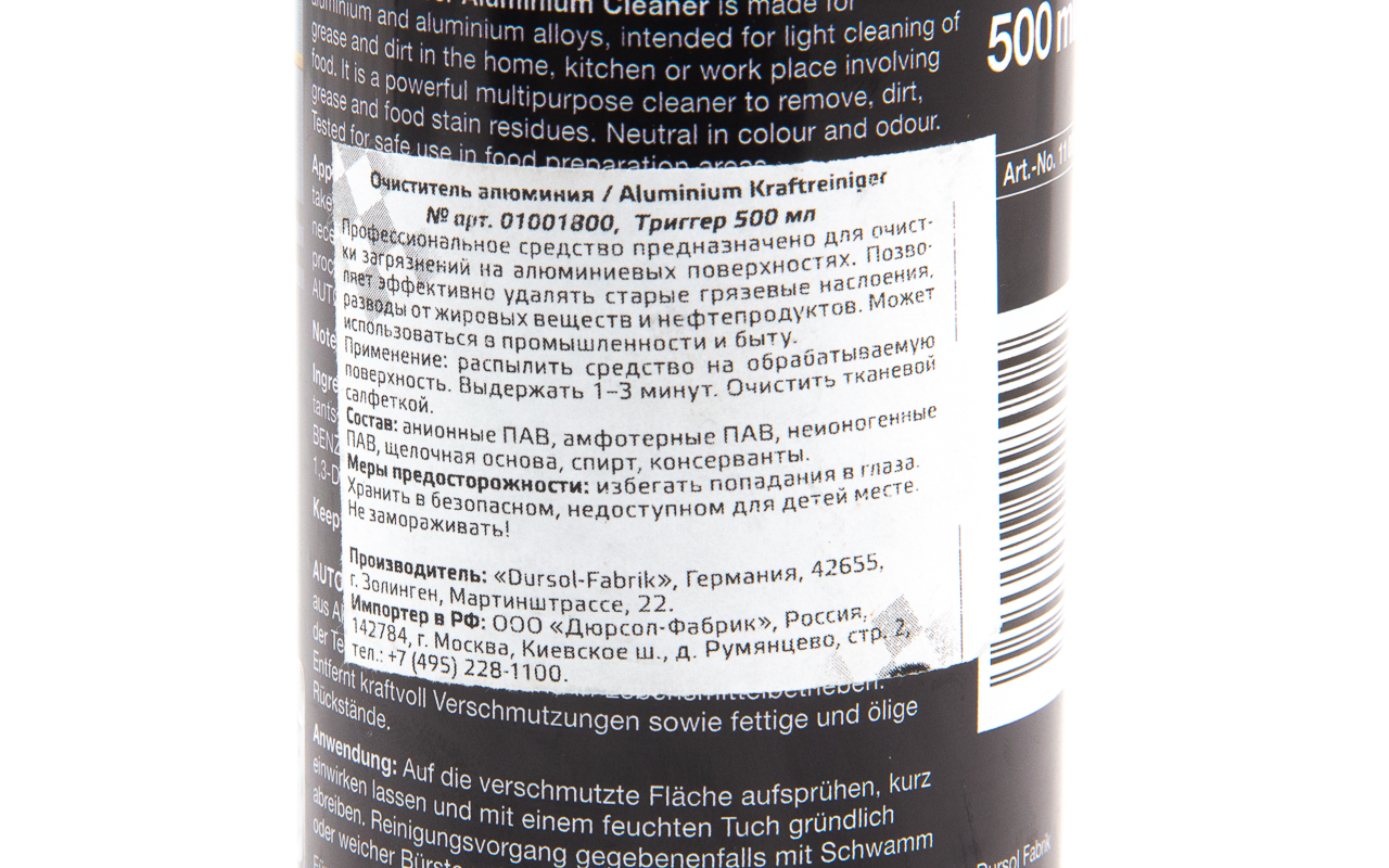 Средство для очистки алюминиевого профиля, 500 мл Ф-0177