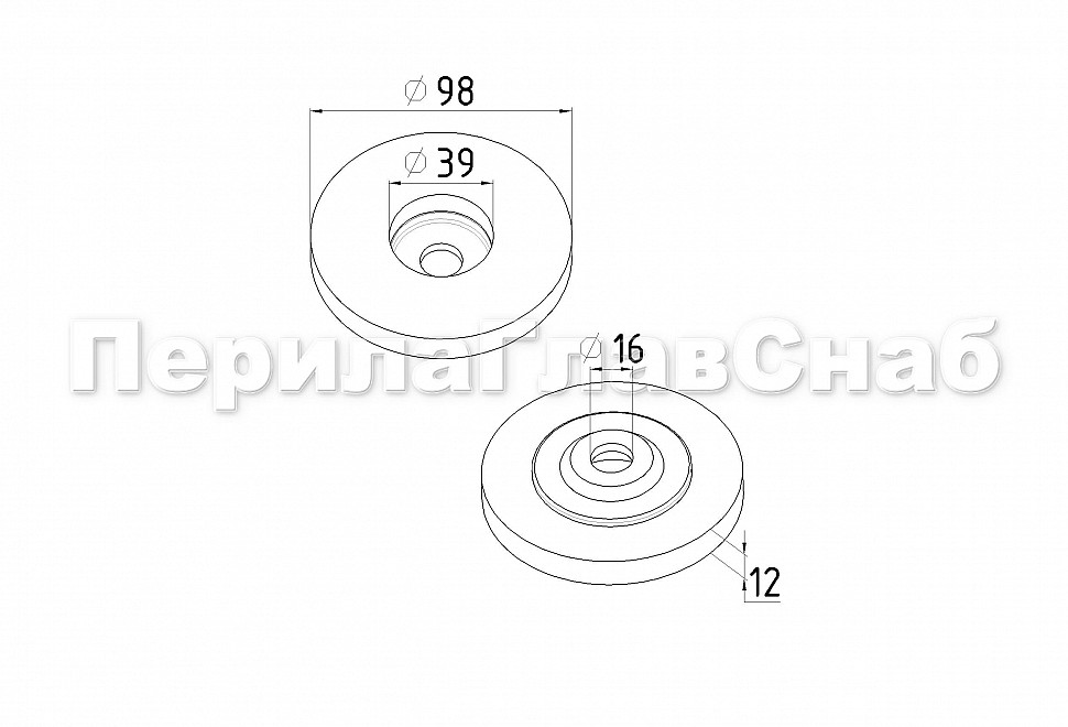 Низ стойки Ø38.1 мм, 60х12.3х0.2 мм, полированный (AISI 410) #200 k015-410