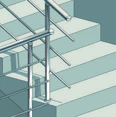 Самым бюджетным вариантом будет использование конструктива, где и поручень и ригеля не завязаны между маршами, то есть прерываются. В таком случае, для жесткости, стойки между маршами соединяются одной или двумя перемычками из нержавеющей стали. Очень простой, экономичный и очень быстрый в установке вариант, идеальный выбор для эвакуационных лестниц.
