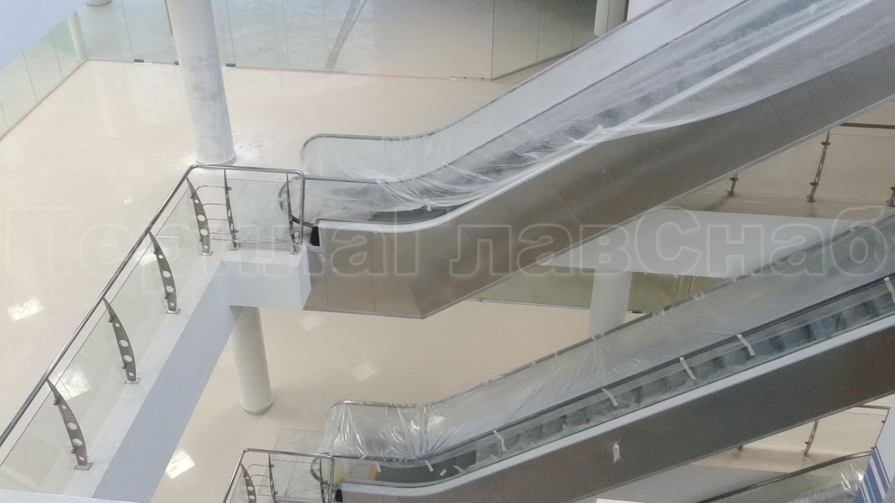 Стеклянные перила, ограждающие атриум в торгово-развлекательном центре.