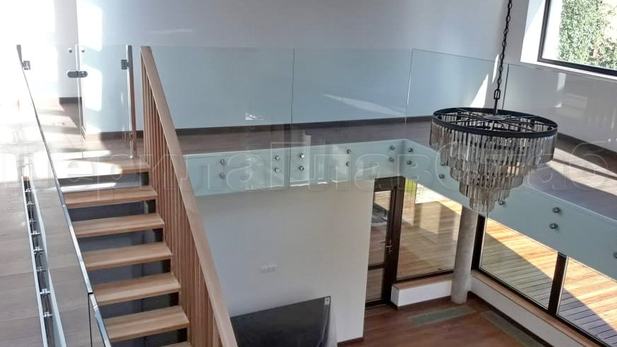 • Стекло триплекс 10+10 мм (по требованию хозяина). У хозяина дети и домашние животные. Он захотел максимальной безопасности и надежности для ограждения из стекла.
