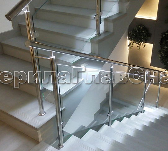 Ограждения лестницы без поручня с зажимными стеклодержателями и стойками