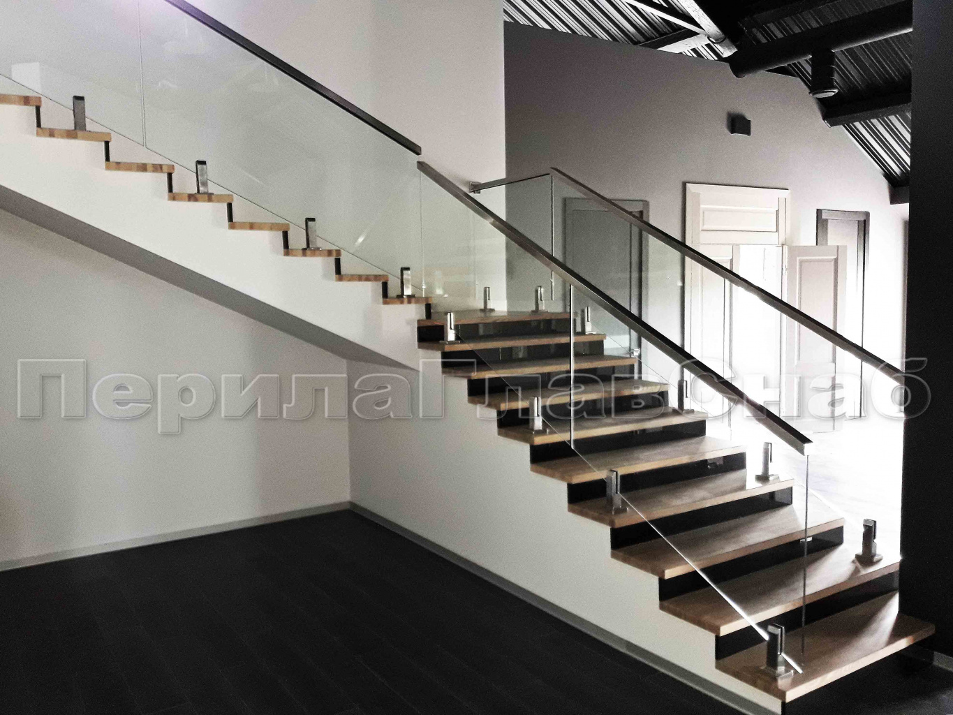 Ограждение лестницы с квадратными стойками и пластинчатыми стеклодержателями в Самаре. Готовые проекты ПерилаГлавСнаб - фото 1 Ограждение лестницы с квадратными стойками и пластинчатыми стеклодержателями в Самаре. Готовые проекты ПерилаГлавСнаб - фото 2