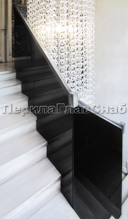 Ограждения лестниц на несущем стекле с подсветкой в Самаре. Готовые проекты ПерилаГлавСнаб